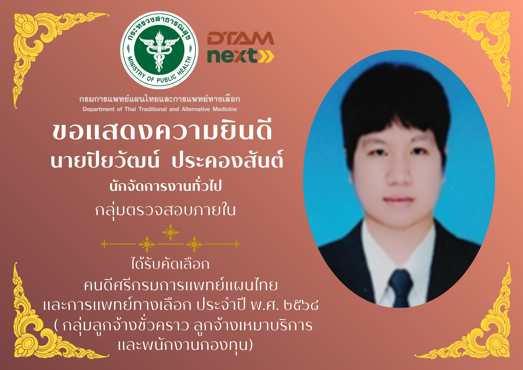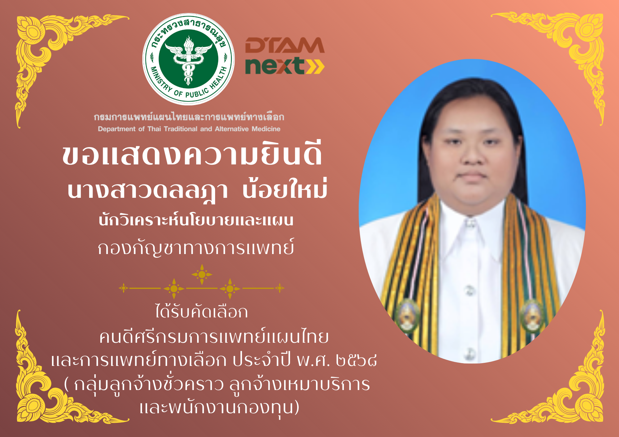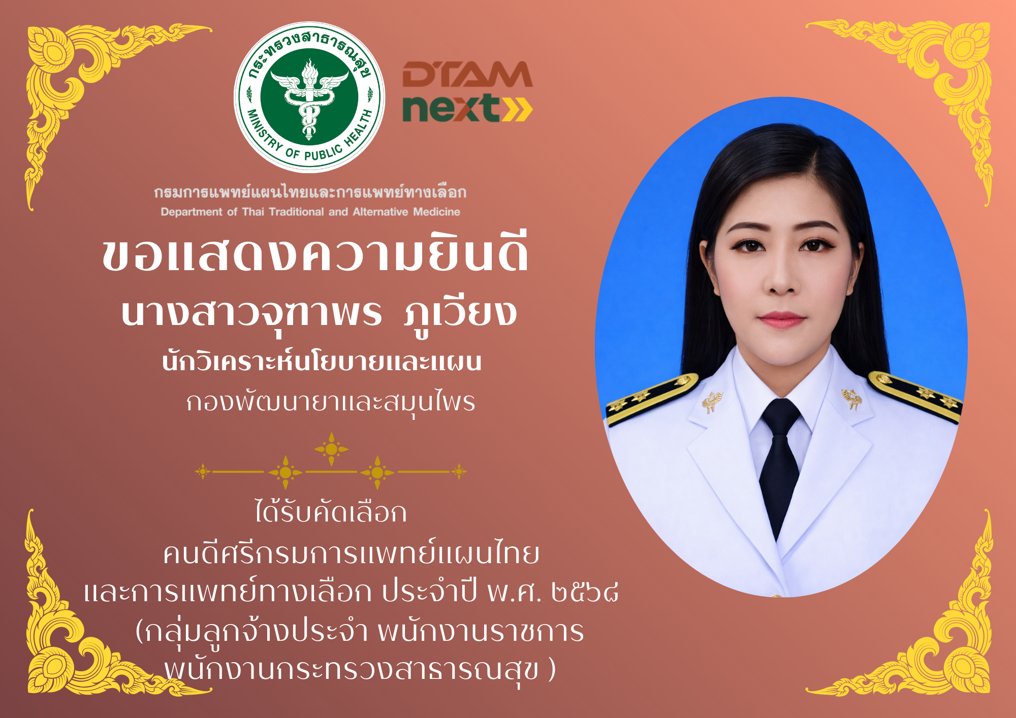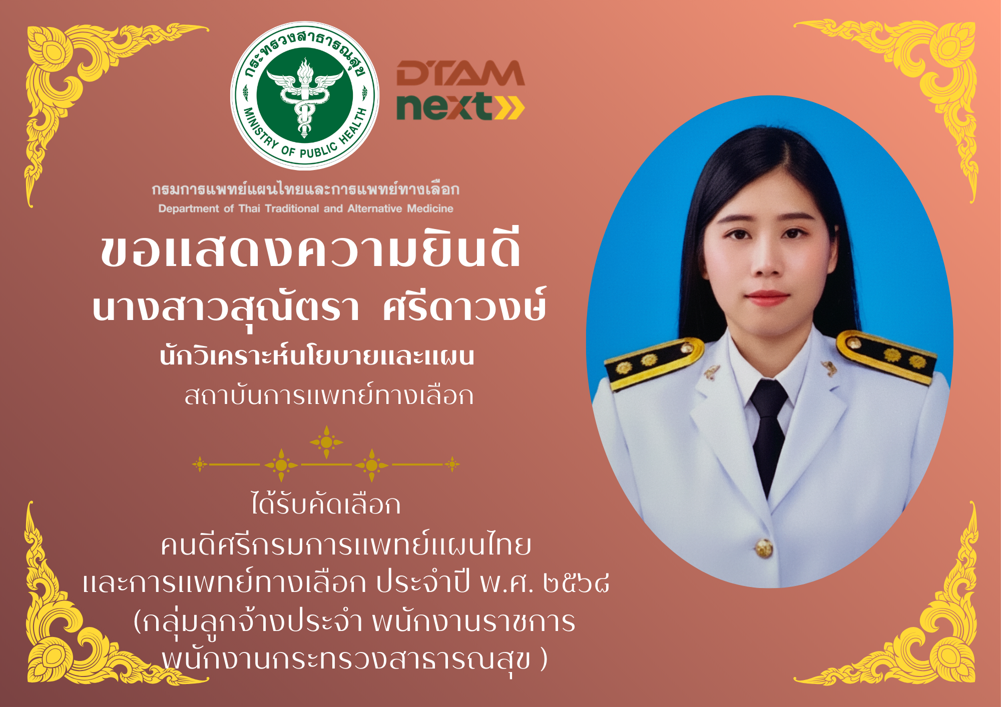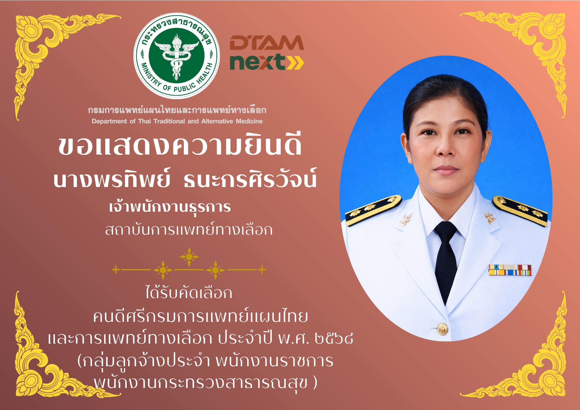 © สงวนลิขสิทธิ์ พ.ศ. 2566 ตามพระราชบัญญัติลิขสิทธิ์ 2537 | กรมการแพทย์แผนไทยและการแพทย์ทางเลือก